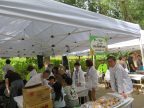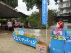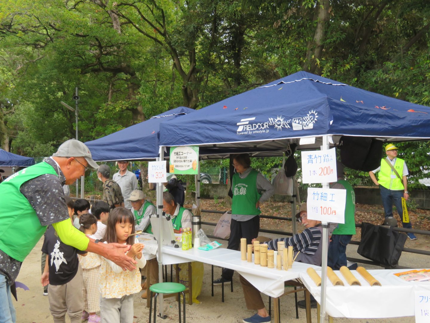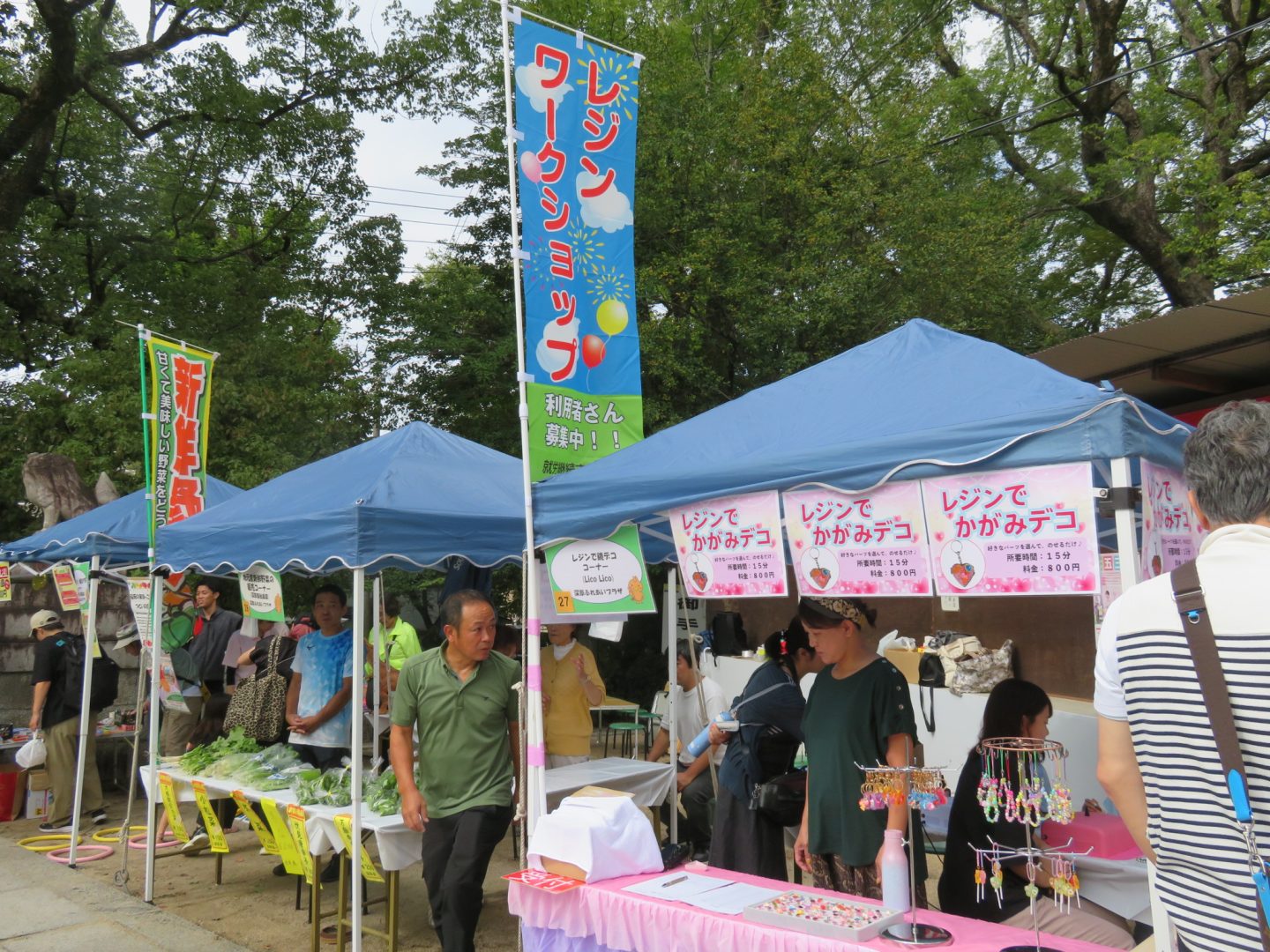 お祭りで定番のスーパーボールすくいやあてもの等のゲームのほか、お茶席や軽スポーツ体験、竹細工などのワークショップ、地元産の新鮮野菜の販売と盛りだくさんです。